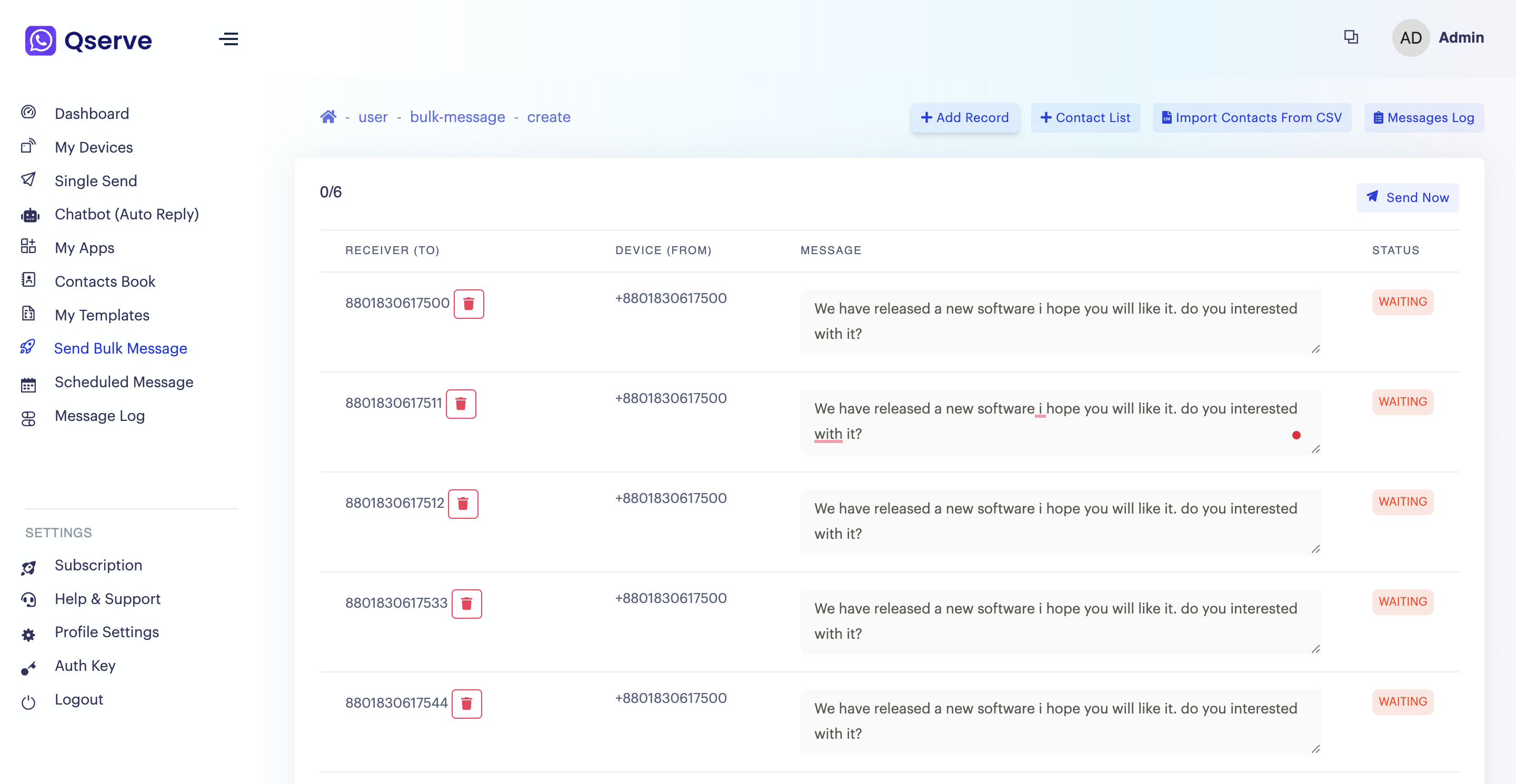 WA Bulk messaging is the dissemination of large numbers of messages for delivery to WASender software. It is used by media companies, banks and other enterprises and consumer brands for a variety of purposes including entertainment, enterprise and mobile marketing.